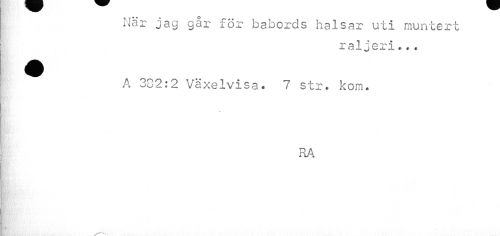 //// När jag går för babords halsar uti muntert //// X 31 j B X i * * « //// A 3C2:2 Växelvisa. 7 str. kom. //// RA ////