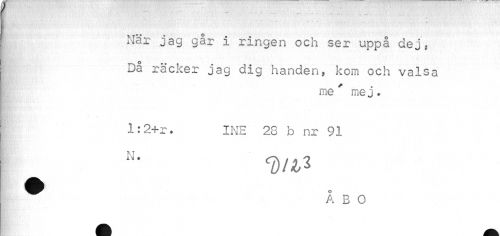 //// r T . //// ¦ //// När jag går i ringen och ser uppå dej, //// Då räcker jag dig handen» kom och valsa //// me ' mej . //// l:2+r. INE 28 b nr 91 //// Du* //// ^ ÅBO ////