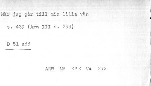 //// När jag går till min lilla vän : //// s. 439 (Arw III s. 299) //// I //// D 51 add i //// .j ¦ ' i , • i t ' i //// ARW MS KB K Vs 2:2 | //// i I //// i ////