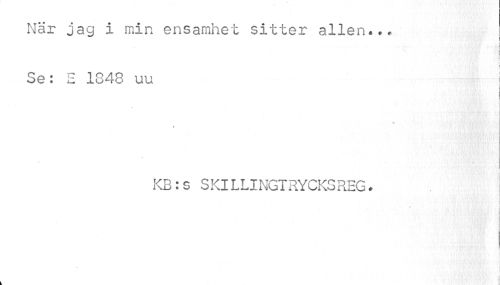 //// När jag i min ensamhet sitter allén..* //// i //// i //// i j //// i i //// Se: E 1843 uu j //// , t //// * //// \ //// i //// KB:S SKILLINGTRYCKSREG. ////