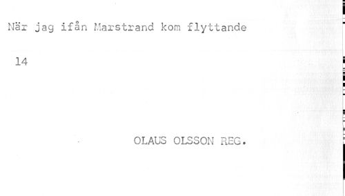 //// I //// När jag ifån Marstrand kom flyttande //// i //// 14 j //// ¦ //// OLAUS OLSSON REG. ////