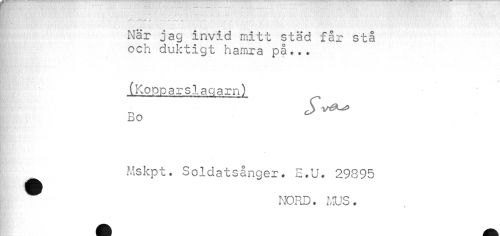 //// • . ....... //// När jag invid mitt städ far stå och duktigt hamra på... //// ¦ • //// (Kopp ar s.l agarn) Bo //// y //// Mskpt. Soldatsånger. E.U. 29895 //// a m //// NORD. I.3JS. //// A fe A //// A mk A ////