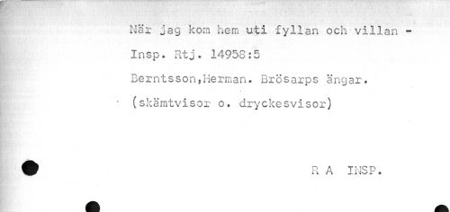 //// v..- . . ... . . ^ //// När jag korn hem uti fyllan och villan - //// Insp. Rtj. 14953:5 //// Berntsson.Herm //// an* urosarps angar* //// //// /(skämtvisor o. dryckesvisor) 0 R A INSP. ////