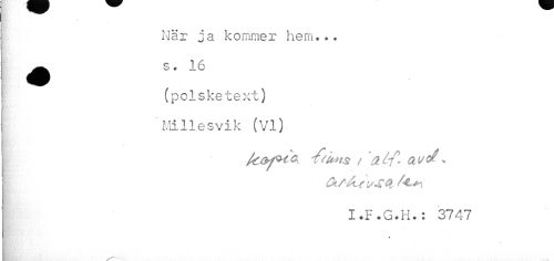 //// När ja kommer hem» *. ^^ s. 16 //// (polsketext) Millesvik (VI) //// if/u*ts / a tf. av o? * //// OtA4 /^n //// I.F.G.H.: 3747 % ////