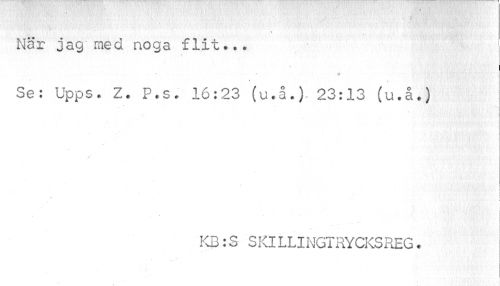 //// När jag'med noga flit... //// i v '¦'»'.. //// Se: Upps. Z. P.s. 16:23 (u.å.)- 23:13 (u.å.) //// • i //// ! //// z a //// t I //// KB :S SKILLINGTRYCKSREG. ////