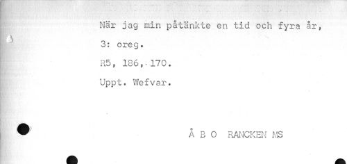 //// I När jag min påtänkte en tid och fyra år, //// 3: oreg. R5, 186, • 170. Uppt. Wefvar, //// ÅBO RANCKEN MS ////
