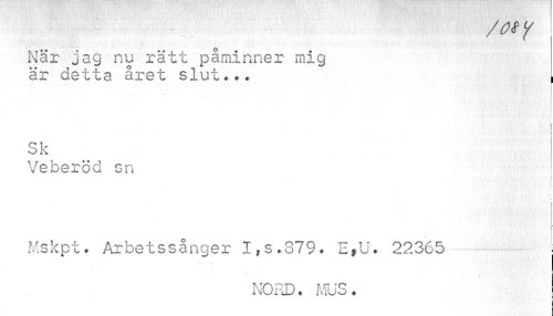 //// / os y //// När jag nu rätt påminner mig //// är detta året slut... , //// Sk //// Veberöd sn //// i f //// i //// Mskpt. Arbetssånger 1,8.879. E»U. 22365 ; //// • 7 //// NORD. MUS. i ////