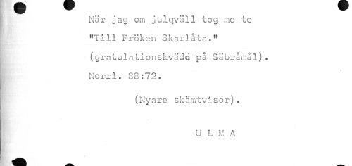 //// När jag om julqväll tog me te "Till Fröken Skarlåta." (gratulationskvädé på Säbråmål). Norrl. 88:72.- //// (Nyare skämtvisor). //// U L. M A ////