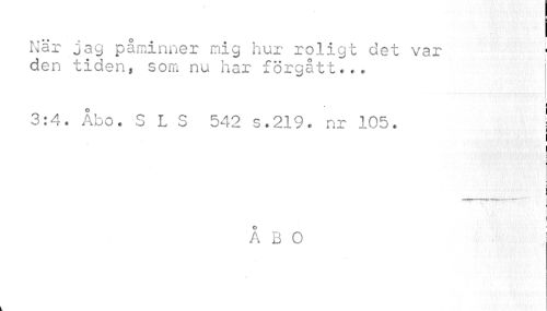 //// När jag påminner mig hur roligt det var j //// den tiden, som nu har förgått... //// ¦ //// 3:4. Åbo. SLS 542 s.219. nr 105. I //// e //// i //// j //// i //// åbo //// t ////