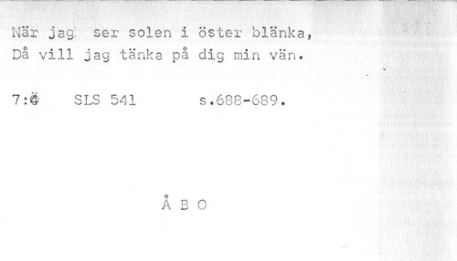 //// [IäämI //// Här jag, ser . solen i öster blänka, Da vill jag tänka på dig min vän. //// 7:® SLS 541 s.688-689. //// ÅBO ////