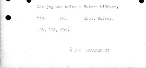 //// När jag ser solen i östern blänker, //// ^ 5:4. NK. Uppt. Wefvar. //// ? • * //// ¦ r5, 186, 298. //// % //// ÅBO RANCKEN MS //// iir ////