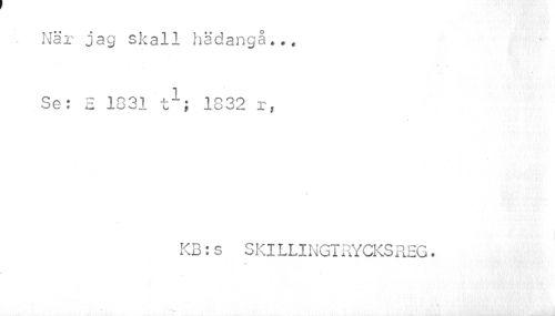 //// När jag skall hädangå... //// i • //// Se: E 1331 t1; 1832 r, //// \ //// KB:s SKILLINGTRYCKSREG. //// « ////