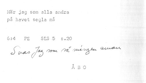 //// När jag som alla andra på havet segla må //// 6:4 PE SLS-5 s.20 //// S^ fo rf //// ÅBO ////