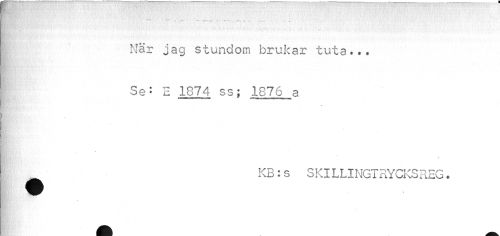 //// '; ''••¦'i?' ' ^-ri //// « ...-- ' — "T - --S //// När jag stundom brukar tuta... ¦Se: E 1874 ss; 1876 a //// hwim—i mmmmmm —¦ f ""k». .^.»»''. im- //// KB:s SKILLINGTRYCKSREG. ////