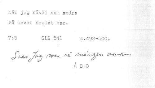 //// När jag såväl som andra På havet seglat har. //// 7:5 SLS 541 s.498-500. //// A B C ////