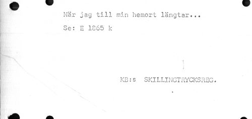 //// När jag till min hemort längtar... Se: E 1865 k //// ¦ //// it //// ¦KL //// •sff H //// • VjJ //// ¦ \ I //// '» f //// } //// KB:s SKILLINGTRYCKSREG. //// "V //// •v 4 //// v _ //// 'K ////