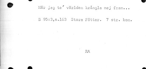 //// ¦ HT ^ ^ //// ^^ Nar jag te världen krångla mej fram... //// B 95: 3, s. 163 Stora Fötter. 7 str. korn. //// « - //// RA ////