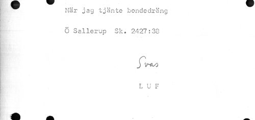 //// När jag tjänte bondedräng Ö Sallerup Sk. 2427:38 //// jt< % //// LUF ////