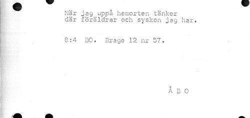//// När jag uppå hemorten tänker där föräldrar och syskon jag har. //// 8:4 BO. Brage 12 nr 57. //// » //// //// /ÅBO //// fe ////