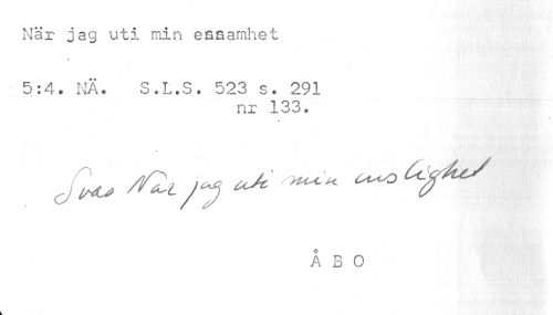 //// När jag uti min ensamhet //// 0 //// S //// 5:4. NA. S.L.S. 523 s. 291 //// nr .133. //// • Jpj //// f*,/K*./y //// ÅBO ////