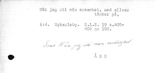 //// r » ¦* —^ //// När jag uti min ensamhet, med allvar //// tänker på, //// 6:4. Nykarleby. S.L.S. 19 s.405- //// 406" nr 150. ////