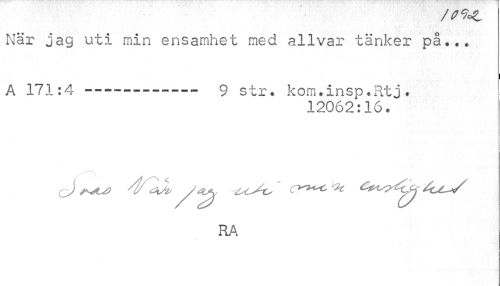 //// När jag uti min ensamhet med allvar tänker på,,. //// i //// A 171:4----—9 str, kom.insp .Rtj . //// 12062:16 * //// c) y ^^ ^ //// RA ////