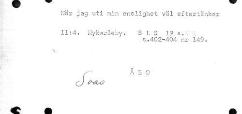 //// När jag uti min enslighet väl eftertänker //// 11:4. Nykarleby. SLS 19 s. •¦¦;•...... //// s.402-404 nr 149. //// x ÅBO' //// C //// /