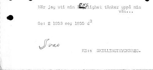 //// När jag uti min 代£fi.ighet tänker uppå min //// vän.*. //// > //// Se: E 1053 oo; 1855 d3 lJJ IStSOO //// KB:s SKI LLINGTRYCKSREG. ////