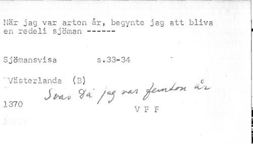 //// När jag var arton års begynte jag att bliva en redeli sjöman ------ 1 //// Sjömansvisa s.33-34 //// "Västerlanda (B) c //// 137 O .¦ //// V r r 1 //// » B ////