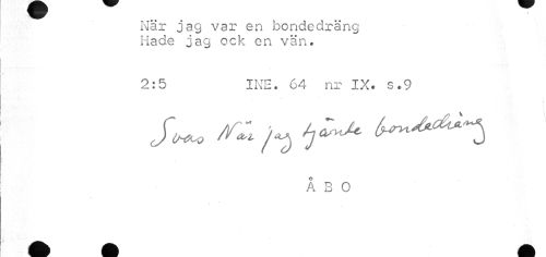 //// När jag var en bondedräng Hade jag ock en vän. //// 2:5 INE» 64 nr IX. s.9 //// S^, /K fo Sj //// ÅBO ////