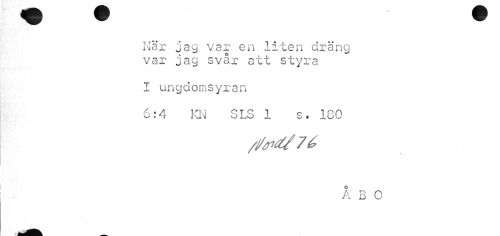 //// När jag var en liten dräng var jag svår att styra //// I ungdomsyran //// 6:4 KN SLS 1 s. 180 //// k B O ////