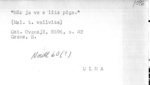 //// ( ^ i & I //// "När ja va e lita piga." //// » //// (Mel. t. vallvisa} //// ¦ W .',' v- 5 •¦•' • "'» ' i , //// ! i //// Gst* Ovansjö, 8696, s * 42 Grane, B. //// f //// U L M A i //// v | //// I //// ¦ ////