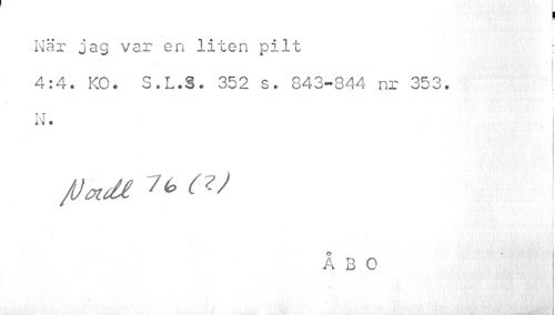 //// I //// När jag var en liten pilt : //// 4:4. KO. S.L.S. 352 s. 843-844 nr 353. ! //// N. //// JOoidi 7*> ( //// i ! //// i //// . i //// ÅBO ////