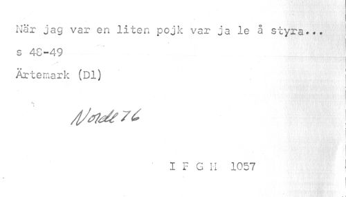 //// När jag var en liten pojk var ja le å styra... s 48-49 Ärtemark (Dl) //// N i //// i //// I F G M 1057 1 //// \ //// 4 ////