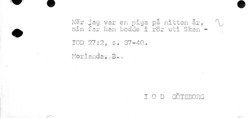 //// När jag var en piga på nitton år, ^^ min far han bodde i rör uti Skan - //// IOD 27:2, s. 37-40. //// Kor 1 anda:, .B. . //// IOD GÖTEBORG //// ---V ////
