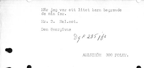 //// ¦ //// När jag var ett litet barn begravde de min far. //// Nr. 2. Mel.not. //// 1 //// ¦ //// Den övergivna //// B //// AI ILS TRÖM 300 FOLKV. ////