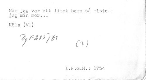 //// När jag var ett litet barn så miste ! //// jag min mor... //// G //// Kö la (VI) 1 //// j //// I //// i i //// fr //// i //// I.F.G.H.: 1754 //// f //// i ..* . + ^ f k . t /i -J— . 'V //// /