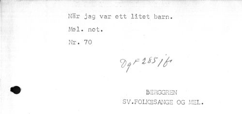 //// B® s ... • . . //// När jag var ett litet barn. Mel. not. Nr. 70 //// /? BERGGREN //// SV.FOLKESANGE OG MEL. ////