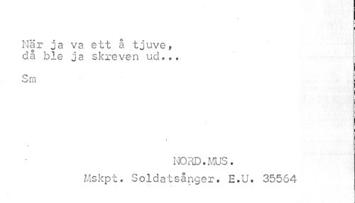 //// När ja va ett å tjuve, då ble ja skreven ud... //// Sm | //// * //// NORD. MUS. Mskpt. Soldatsånger. E.U. 35564 ////