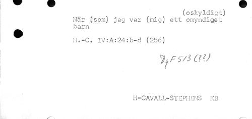 //// (oskyldigt) //// När :(:som) jag var (mig) ett omyndigét barn //// ^ H.-C. IV:A:24: b-d (256) //// H-CAVALL-STEPHENS KB //// ---- ¦ ////