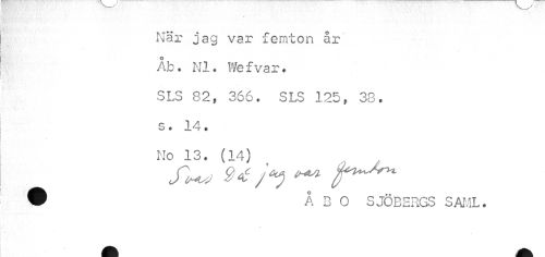 //// När jag var femton år //// Åb. NI. Wefvar. //// SL5 82, 366. SLS 125, 38. //// 5. 14. //// No 13. (14) //// # ÅBO SJÖBERGS SAML. //// jjå fe^ ^^ ////