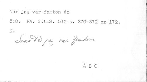 //// ! //// När jag var femton år //// 5:8. PÅ* S.L.S. 512 s. 370-372 nr 172. N* //// ¦ i //// \ //// i //// ÅBO ////