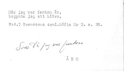 //// När jag var femton år, begynte jag att bliva, //// 9:4.? Svenssons saml.häfte Nr 2. s. 35. //// : //// ' Å B O ////