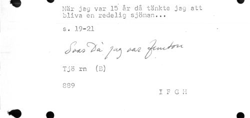 //// När jag var 15 år då tänkte jag att bliva en redelig sjöman... //// s. 19-21 //// Tjö rn (B) //// 889 //// IFGH //// v ////