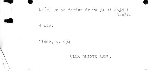 //// Nä(r) ja va femton år va ja så nöjd å //// gläder //// 4 str. //// 11432, s. 994 //// ULMA BLIXTS SAML. ////