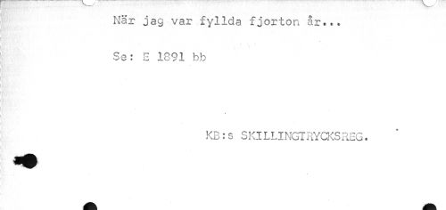 //// När jag var fyllda fjorton år... //// t //// Se: E 1891 bb //// KB:s SKlLLINGTRYCKSREG. ////