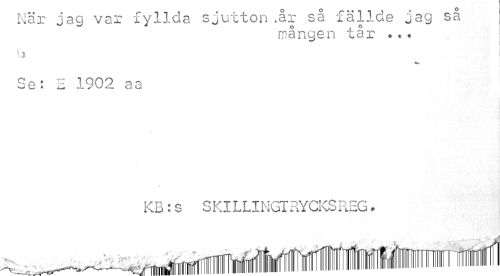 //// Nar jag var fyllda sjutton .ar sa fällde jag sa //// mången tår .*? //// to //// . //// i //// Se: E 1902 aa //// » //// KB:s SKlLLINGTRYCKSREG. //// A ^ t(*nkaåA viié* A» ' ' ' • < ^Jr ' //// ^mrtm Jlt oWlflV Äfll TflrrUT rtlfflL^lf MrirnTlTf' ^Tl^mrir_-TinTirrrTiniTlf[l //// ____ .^»TfirtiifkttiM if i ill II f 111 i //// ¦ t*y • rrtffi^ ^ ^••¦'"TV II nfÉM I III I I III I II III ////