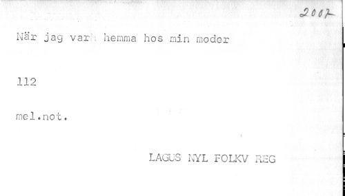 //// o'266h //// När jag var i hemma hos min moder //// i //// 112 //// mel«not. //// ¦ //// LAGUS KYL FOLKV REG | ////
