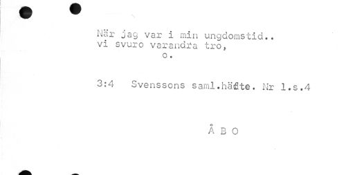 //// p //// När jag var i min ungdomstid», vi svuro varandra tro, //// o? //// 3:4 Svenssons saml.häflte. Nr l.s.4 //// ÅBO ////