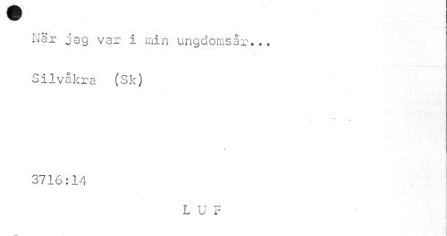 //// När jag var i min ungdomsår... Silvåkra (Sk) //// • * //// § //// 3716:14 //// LUF ////